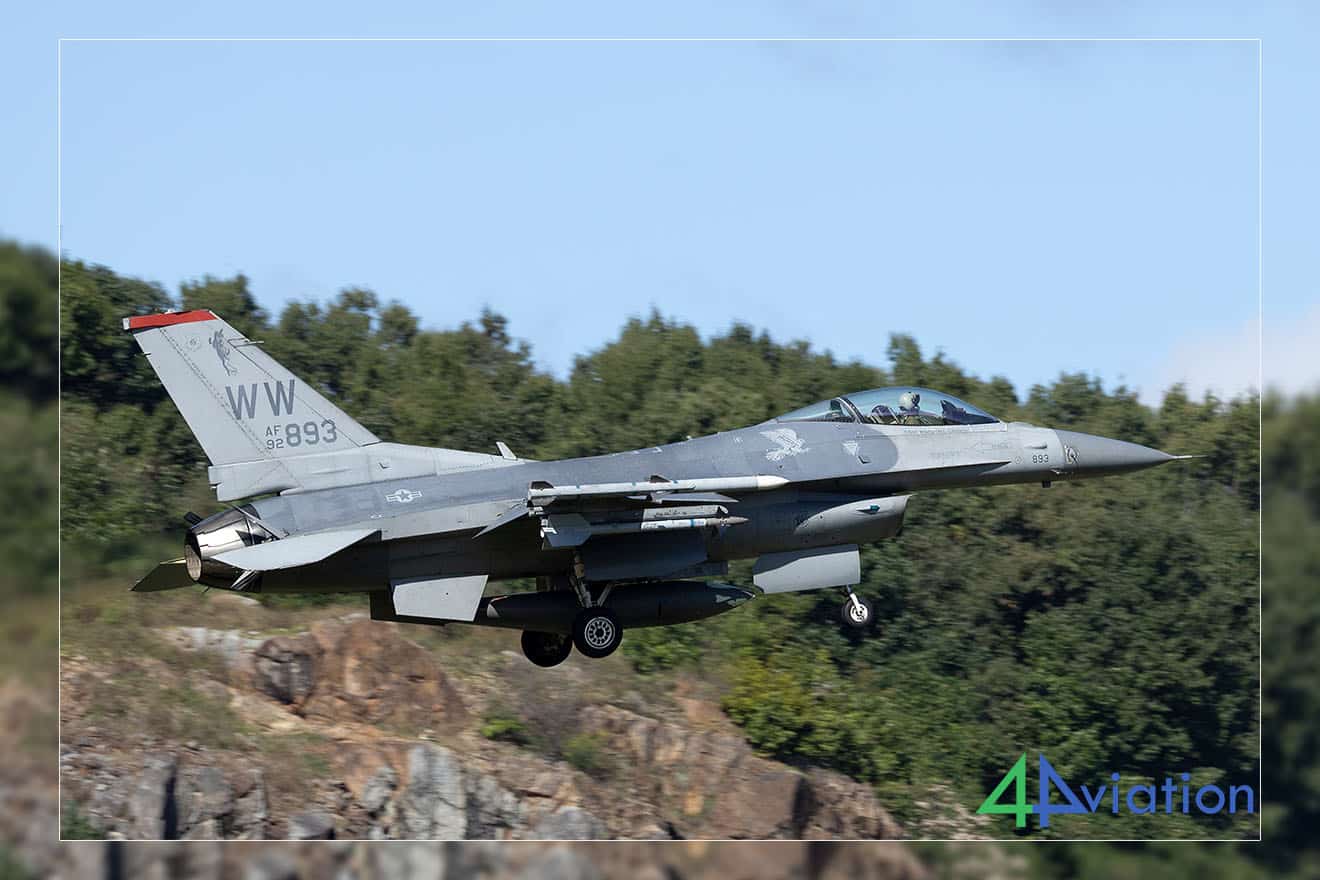 Donderdag 16 oktober 2025 was onze laatste operationele dag, aangezien vrijdag in het teken zou staan van de open dag in Seongnam. We begonnen in Wonju, dat ’s middags een prachtige noordelijke nadering biedt. Helaas was dit met noordenwind en een vroege start niet bruikbaar. We zochten naar een alternatieve locatie en vonden er een die zelfs beter was dan de noordzijde. We hoorden diverse KA-1’s en FA-50’s vertrekken, maar waren verrast toen het eerste landende toestel een USAF F-16C bleek te zijn met staartcode OS. Deze werd gevolgd door een WW-gecodeerde F-16 die een doorstart maakte voordat hij enkele minuten later alsnog landde, wat duidde op een probleem met het eerste toestel. De jets landen in een vallei, met een bergachtig decor van bomen en rotsen, wat voor spectaculaire beelden zorgt.
