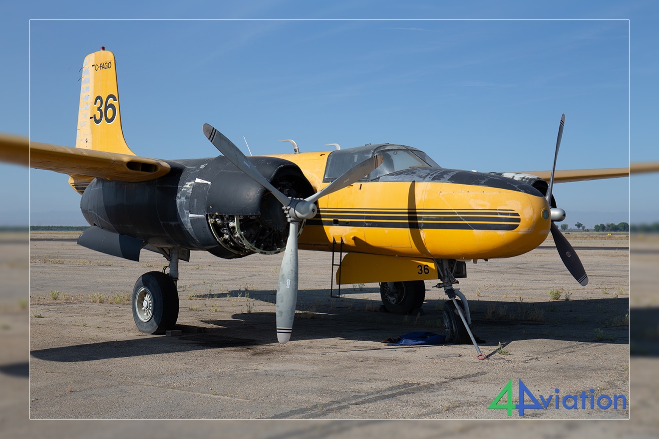 Het was alweer maandag 23 maart, onze laatste dag. We hadden wederom geen haast om terug te keren naar LA, want we hoefden alleen nog maar een paar wrakken en overblijfselen te bekijken op het eerste deel van onze reis. Dit waren onder andere een F-4 en een B-17, beide in het prachtige ochtendlicht in Tulare, en vervolgens een stop bij Minter Field voor de museumvliegtuigen. Op het platform wachtte ons echter een verrassing in de vorm van een A-26, een UH-1, een MB-326 en een Agcat.