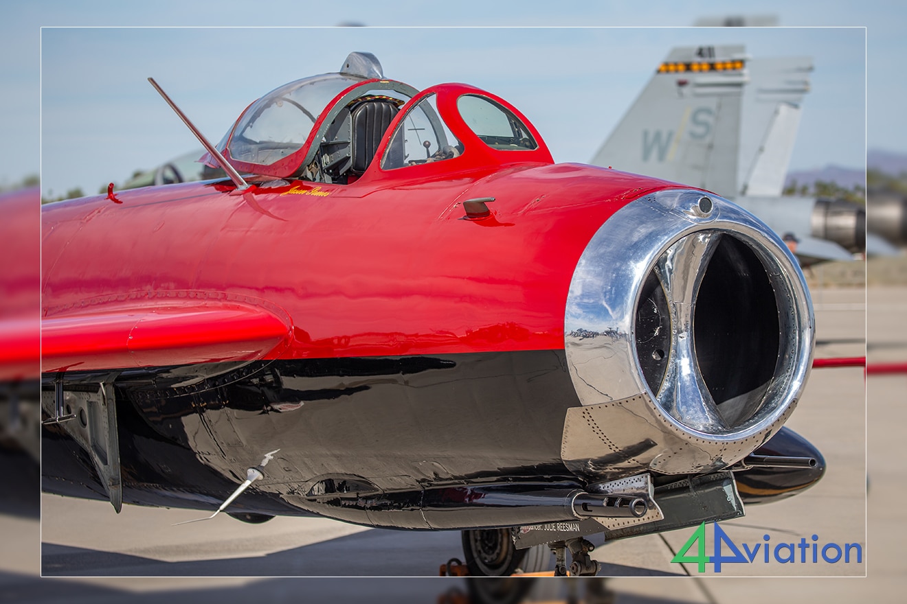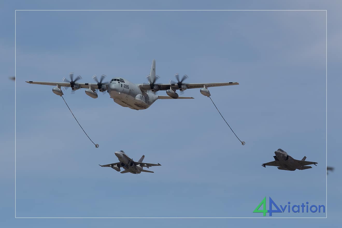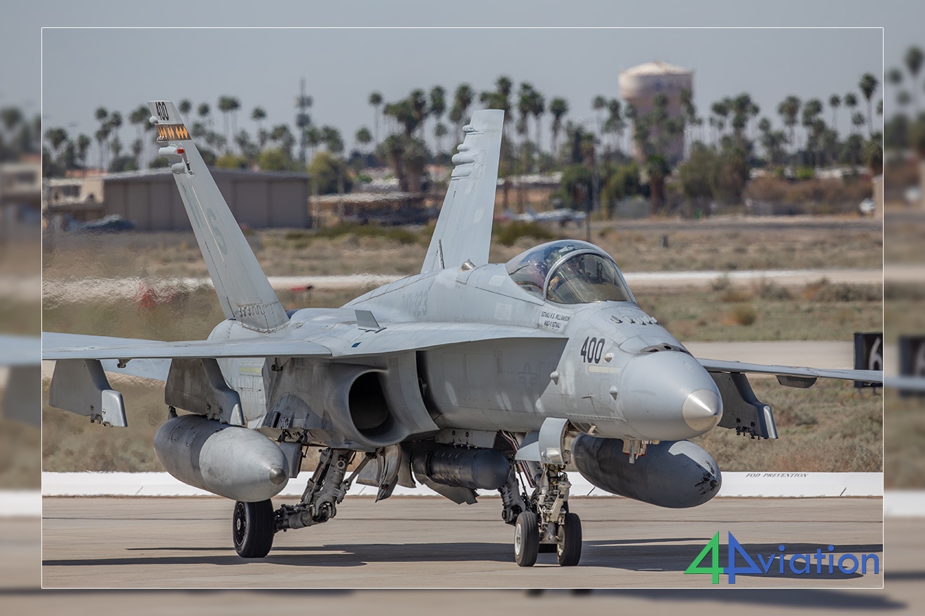 De laatsten, waaronder het toestel van VFMA-122 CAG, vermaakten ons twintig minuten lang met rondjes vliegen, waardoor we van positie konden veranderen en verschillende hoeken voor onze foto’s konden vastleggen. Al deze actie werd tien minuten later overtroffen door de sterren van de show; twee kleurrijke F-5 aggressors van VMFT-401.