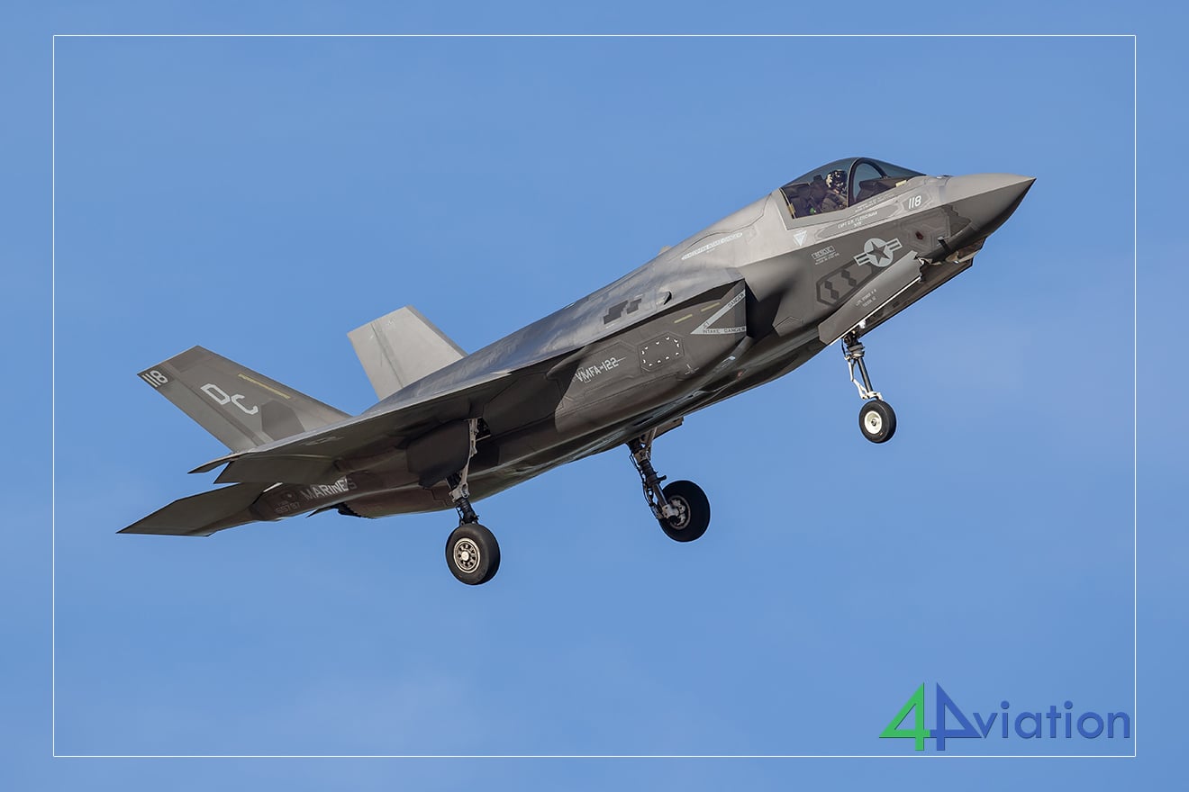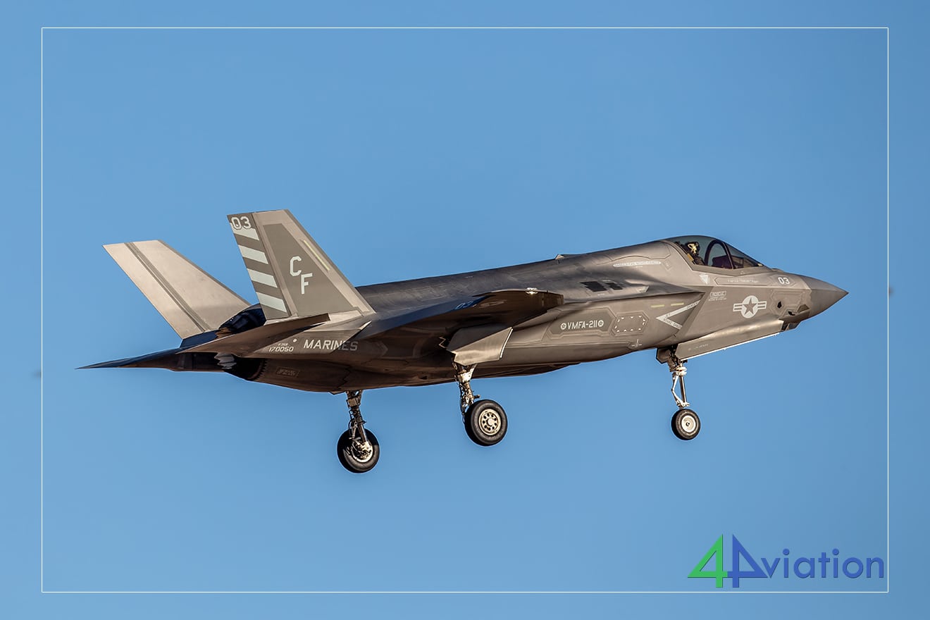 Daarna volgden twee F-35’s van VMFAT-502 met centrale wapenpods. De zon stond inmiddels ongunstig voor foto’s, dus besloten we naar ons nieuwe hotel te rijden, drie uur verderop, via een niet-luchtvaartgerelateerde plek: het Yuma Proving Ground museum, om wat oude tanks te bekijken. Gelukkig stond er ook een prachtige AH-1 Cobra op een paal in de buurt! De rit door het Amerikaanse platteland verliep erg soepel en we konden snel inchecken, ondanks wat computerproblemen.