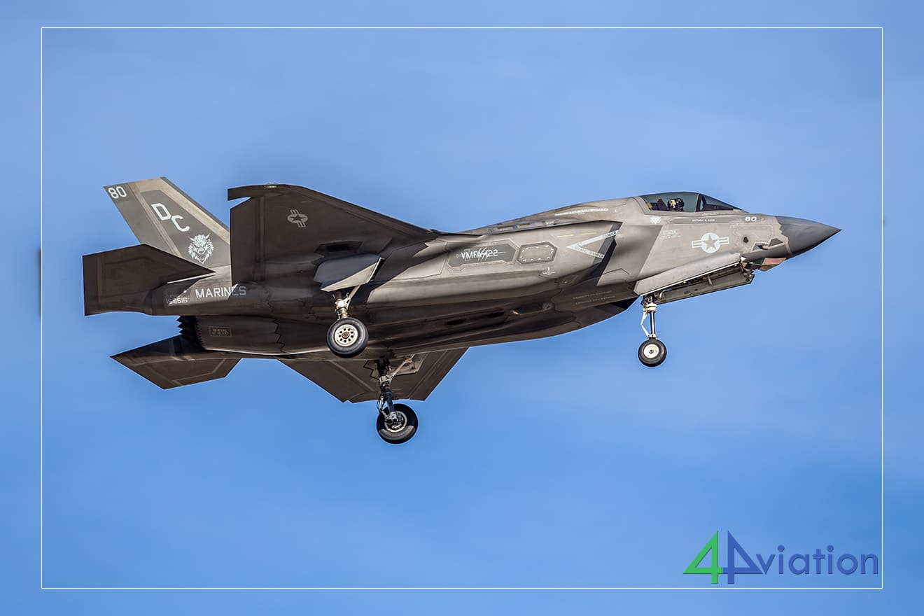 Na een snel ontbijt arriveerden we keurig aan het zuidelijke uiteinde van de landingsbaan, net toen een van de F-35’s terugkeerde van zijn vroege ochtendmissie. We slaagden er nauwelijks in om dat op onze geheugenkaarten vast te leggen voordat de volgende verscheen; en de drie daarna volgden direct.