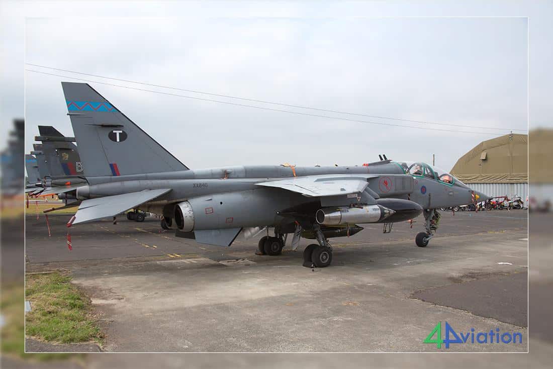 Also the many instructional airframe Jaguars were seen here and there (apparently up to 37 different aircraft of the type). Even on the other side of the field Jaguars were parked and a hangar full of them. A true feast for the enthusiast! There were several helicopters in the grass that would fly in the afternoon. Until 3 PM the air show was backlit. Highlights were a flying Sycamore and a Whirlwind. Fighter demos were performed by a French Rafale C, a Belgian F-16AM from Florennes and a Polish MiG-29A. Also a Royal New Zealand Air Force Boeing 757 came to provide a demo. It remains impressive to see a 757 fly in this way. Also old-timers such as the Bollingbroke, Lancaster, Dakota, Spitfire, Hurricane, Devon and Anson took part. At the end of the day the RAF came with a flyby of a Tornado GR4, a Typhoon demo and a one way pass of an A400M. Of course the Red Arrows were there on this anniversary show.